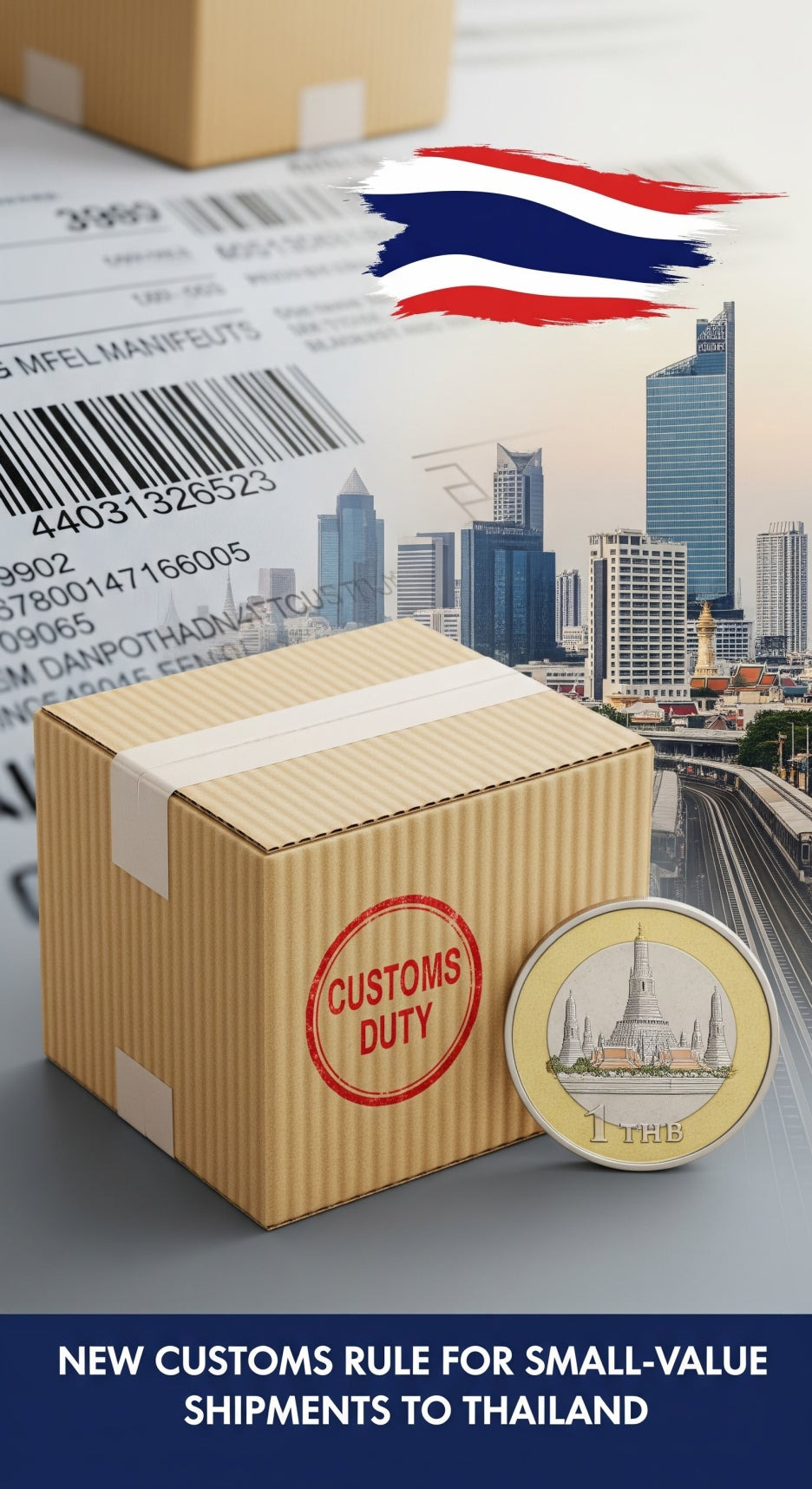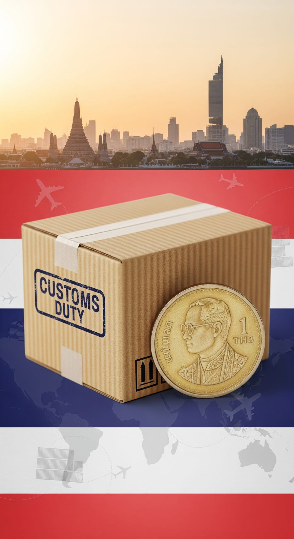 2026년 1월 1일부터 모든 태국으로 수입되는 모든 발송 화물(THB 1이상)은 세관 관세율에 따라 관세가 부과됩니다.